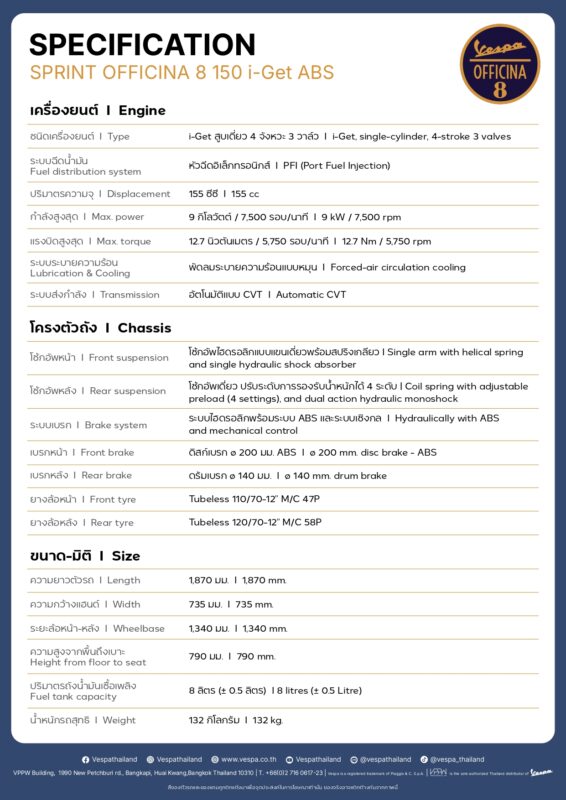 เส้นสายเรียบเฉียบ ผสานความคลาสสิกของ Vespa กับความเป็นสปอร์ต